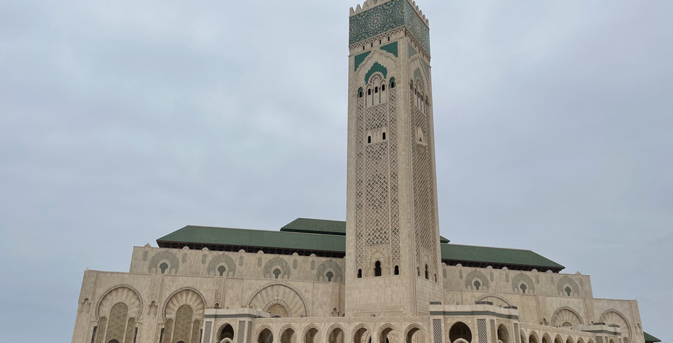 After room service for dinner and a good night's sleep and breakfast on the 27th floor, I headed down to meet Abdul and my guide for the day, Sid, for a day out in Casa. We hit up the Jewish history museum, walked through a market place, and the Old Medina, did a drive by of some historical points, a palace or two, past the port and stopped to walk around the edges of the huge Hassan II Mosque…the biggest in Africa and nearly the entire world. It is impressive, to say the least, even from the distance. Unfortunately ***due to the Covid*** it is blocked off and we couldn’t go near the building and close to the archways. We finished off the day with a walk along the wild Atlantic coast in an area called the Corniche and I was deposited back at the Kenzi Tower hotel.